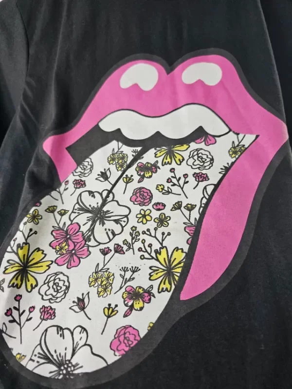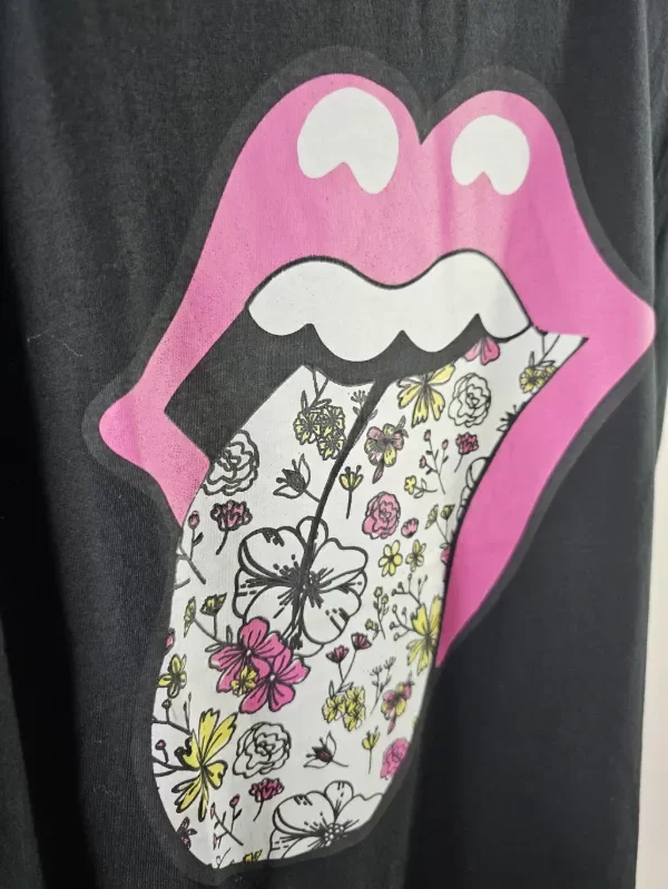 Remera de algodon, con estampa lengua con flores.