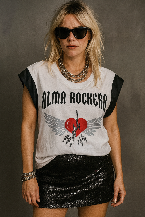 Aplique de lentejuelas, y manga japonesa de ecocuero