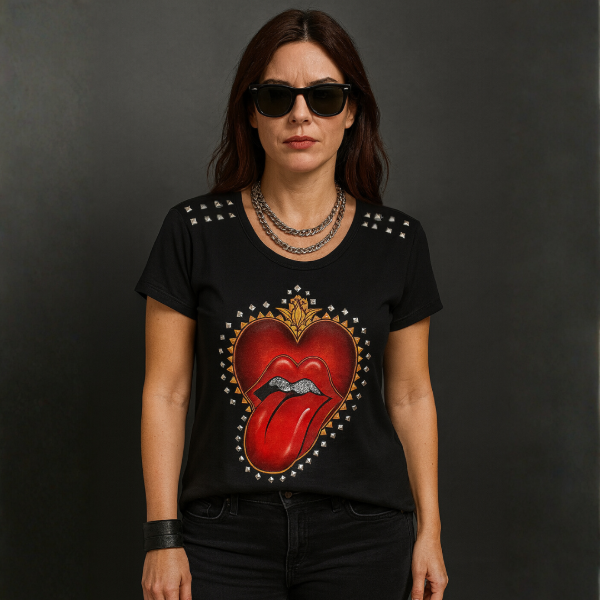 Remera de algodon, con estampa exclusiva EGM, y tachas!