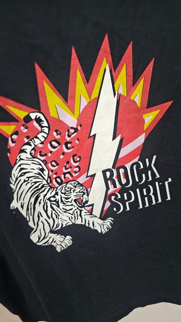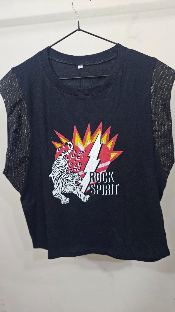 Remera de algodon, con estampa, y lurex en manga japonesa