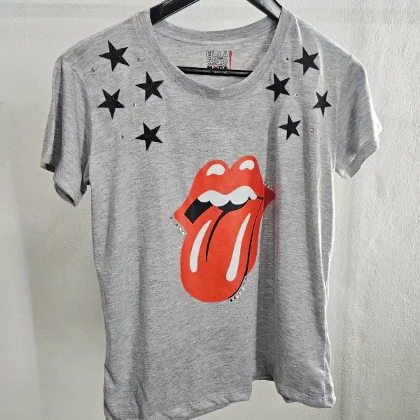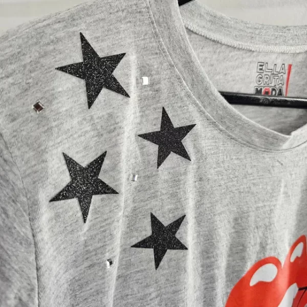 Remera con apliques de estrellas, espejitos mini y por supuesto la lengua stone!
