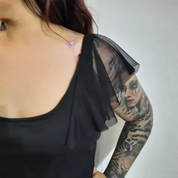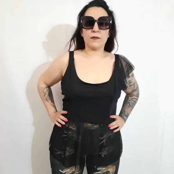 Top realizado en crep, con volado estilo peplum confeccionado en tul